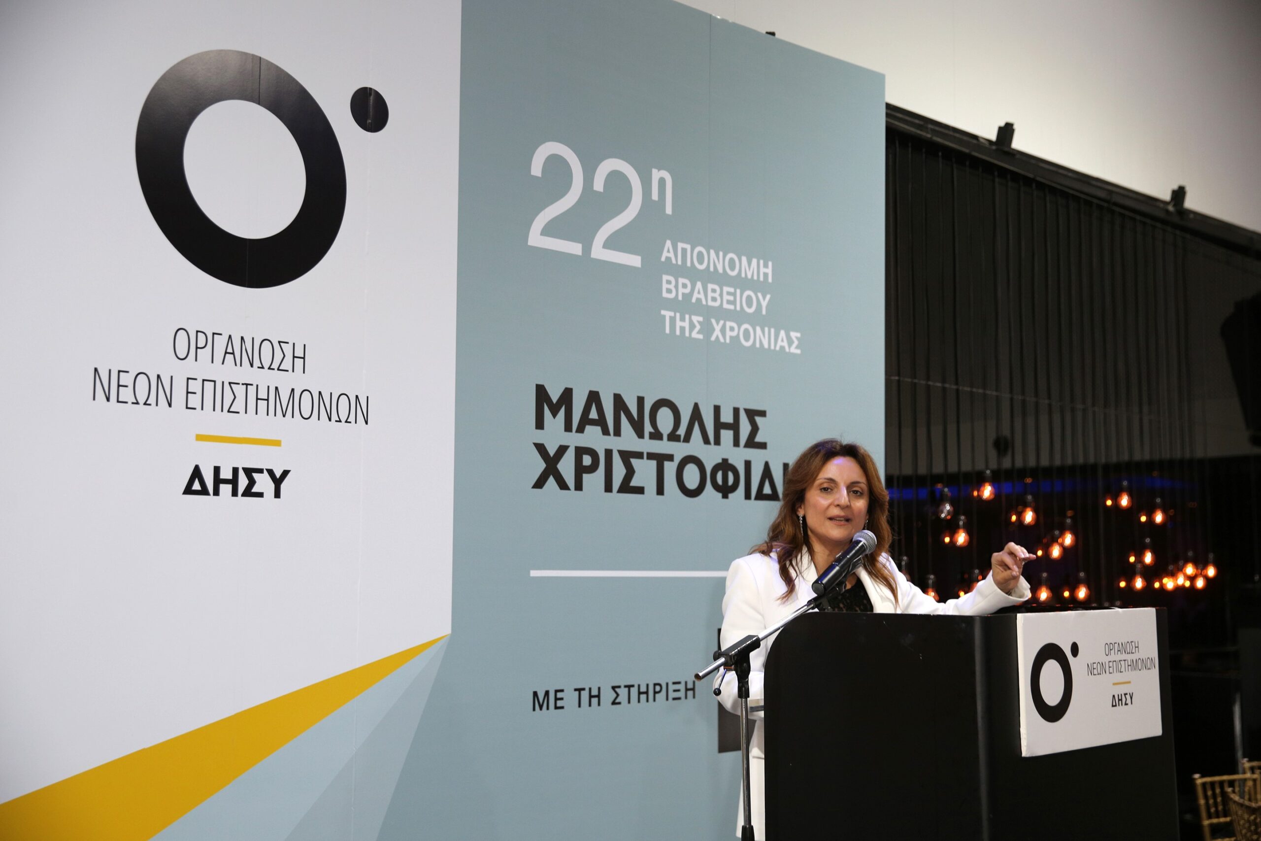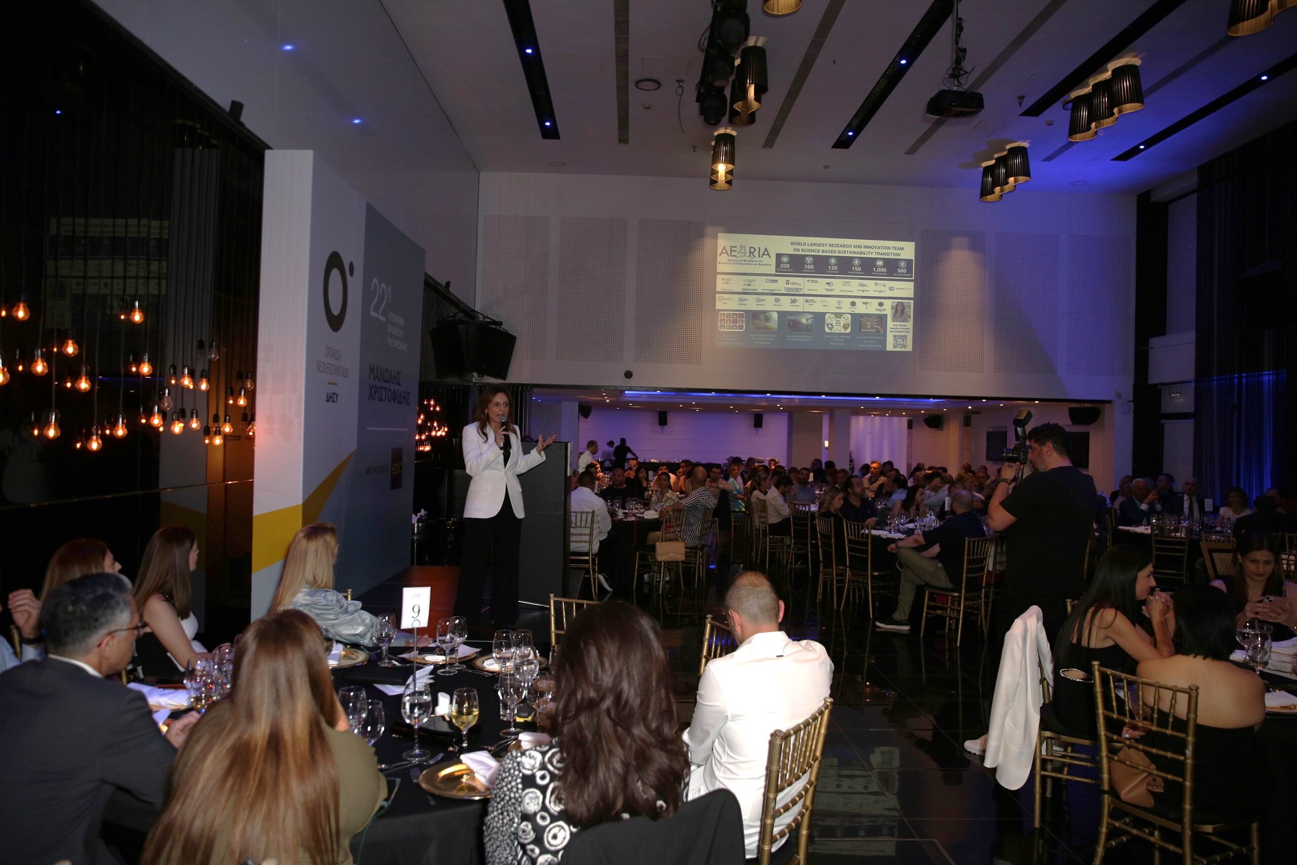 Prof. Koundouri had the honor of receiving the award from Mrs. Annita Demetriou, President of the House of Representatives and President of the Democratic Rally Cyprus Association. The ceremony, marking the 22nd year of the award, was held in Nicosia, Cyprus, with the presence of esteemed guests, including Mr. Nikos Anastasiades, former President of Cyprus.
