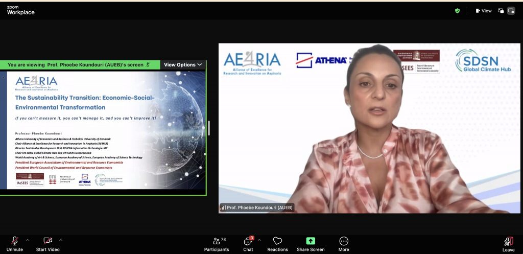 Her keynote address, titled “Science-Based Systems Sustainability Transition: If You Cannot Co-Design with Stakeholders, You Cannot Implement,” underscored the necessity of sustainability transitions to address climate change, economic development, ecological integrity, and social justice. Professor Koundouri highlighted that achieving sustainability requires a science-based, holistic approach to managing natural, economic, and social systems, with defined objectives an