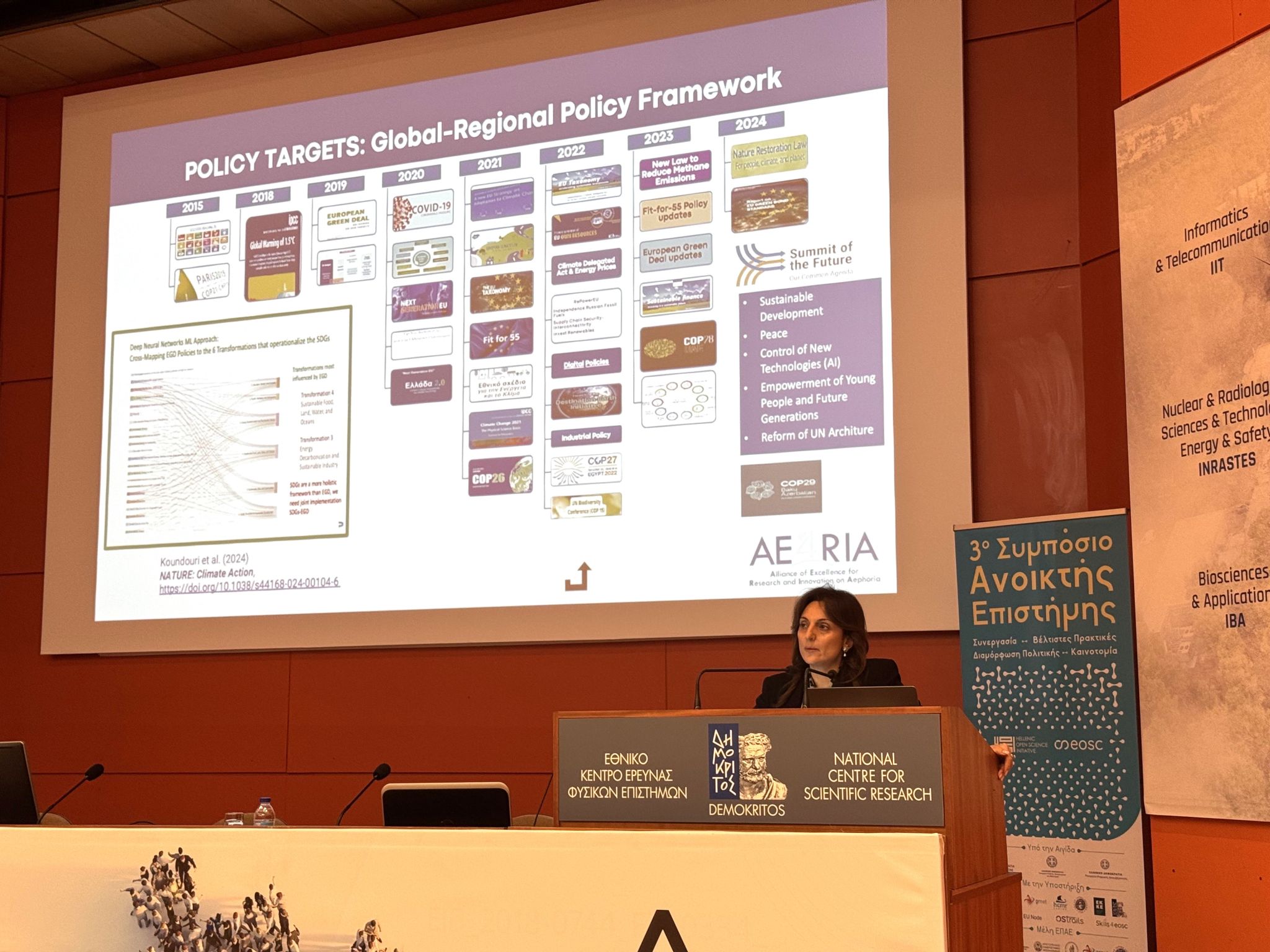 Professor Phoebe Koundouri was honored to deliver the keynote address at the 3rd Symposium on Open Science in Greece, organized by the National Initiative for Open Science (EPAE), which took place on December 10-11 at NCSR “Demokritos.” The event highlighted Greece’s leadership in advancing the European Open Science Cloud (EOSC) and the efforts of the EPAE Consortium to strengthen Open Science, while engaging policymakers to integrate Open Science into national strategies for the New European Research Area.