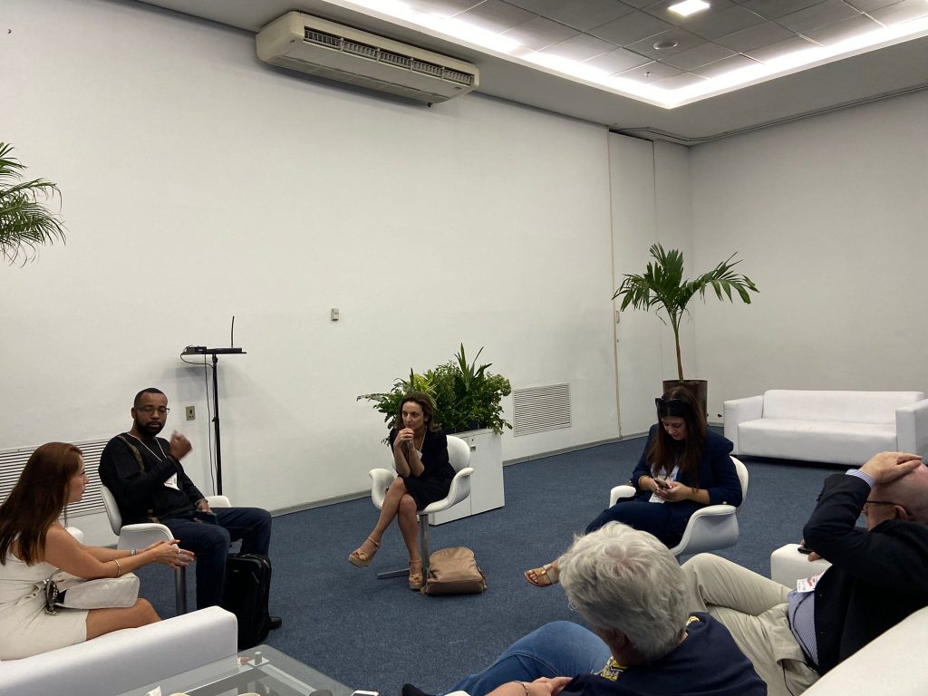 On the 14th of February, during the 6th G-STIC Conference and a day prior to the launch of 4th edition of SDSN’s Global Solutions Forum (GSF) in Rio de Janeiro, Prof. Koundouri had the honor of meeting and discussing synergies with colleagues from the SDSN Secretariat, Giovanni Bruna (Program Manager, Networks Program) and colleagues representing SDSN’s member institutions including Ibrahima Kampo (Network Manager, SDSN Sahel), Gianluca Breghi (Managing Director, Achille Sclavo Foundation), Ali Ruiz Coronel (Researcher-Lecturer, Institute for Social Research, National Autonomous University of Mexico), and Darelle Van Greunen (Distinguished Professor and Director, Centre for Community Technologies, Nelson Mandela University). These colleagues, along with John Lavis, Director, McMaster Health Forum, and Co-Lead, Global Commission on Evidence to Address Societal Challenges, McMaster University (who joined virtually) were the 5 speakers who presented their innovative and scalable solutions to a global audience.