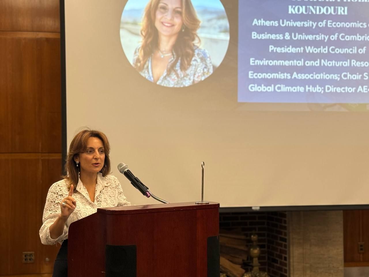 Professor Dr. Phoebe Koundouri delivered the opening remarks, underscoring the global impact of the AoG program and the contribution of the EU-funded ARSINOE Project in co-developing lessons and climate resilience case studies that position education as a catalyst for sustainability action. She emphasized that history can serve as a powerful guide in the search for innovative solutions to today’s crises, from climate change to inequality.