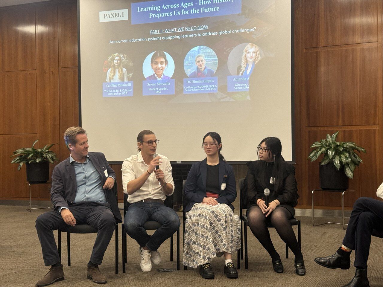 Dr. Dimitris Raptis (SDSN Greece) contributed to Panel I: Learning Across Ages, highlighting the importance of integrated and participatory learning that bridges science, policy, and society. He pointed to the capacity of Generation Z as adaptive system-thinkers and showcased initiatives such as AoG and the SDSN Global Climate Hub as leading examples of transformative education for global citizenship.