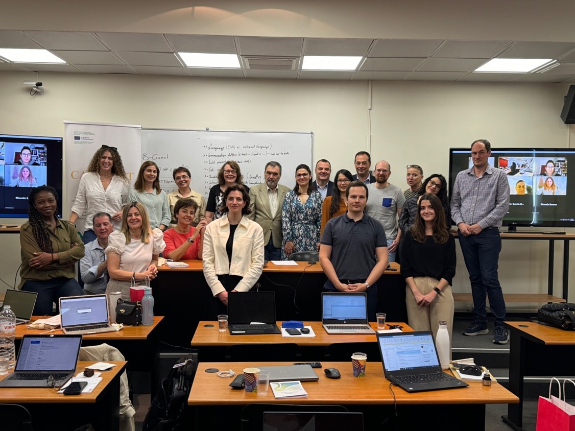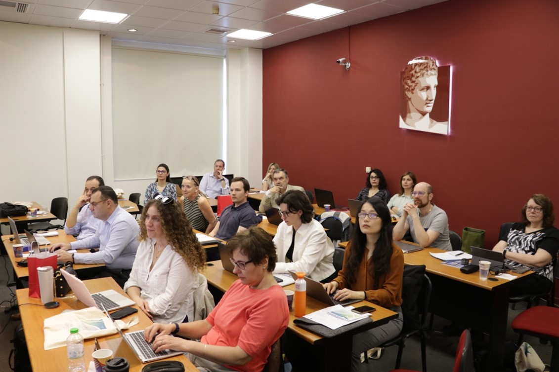 The Project meeting took place on Wednesday 10th of April 2024 at AUEB premises. Ms. Lydia Papadaki (PhDc, Reseacher, AUEB), Mrs Eleni Tolli (Senior Researcher, AUEB) and Dr. Ebun Akinsete (Senior Researcher, AUEB) welcomed the participants on the 1st day. The meeting focused on the progress of project related activities, including quality assurance, progress in preparation of a portfolio of resources and services, status quo in preparation of training materials, and dissemination activities. Mrs Panagiota Koltsida (Researcher, AUEB), presented the progress on the preparation of Meta Data.
