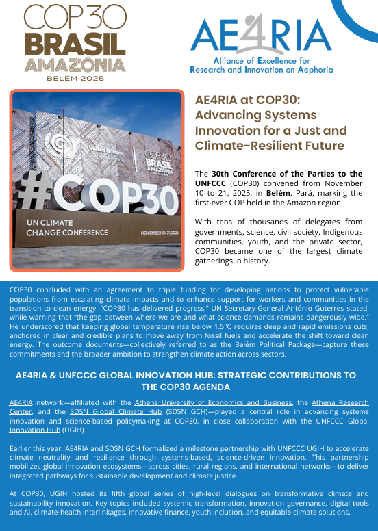At COP30 (Belém, Brazil | 10–21 November 2025), AE4RIA – Alliance of Excellence for Research