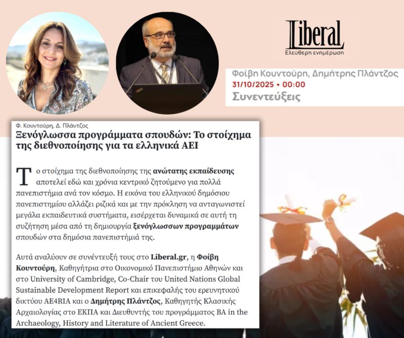 On 31 October 2025, Prof. Phoebe Koundouri gave an interview to Φιλελεύθερος Εκδοτική Α.Ε., together