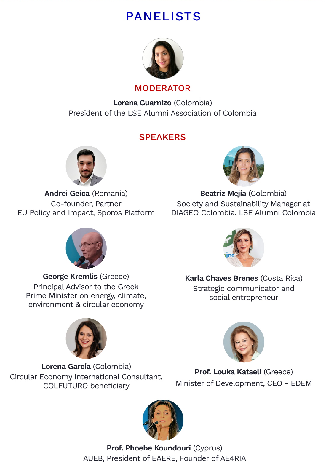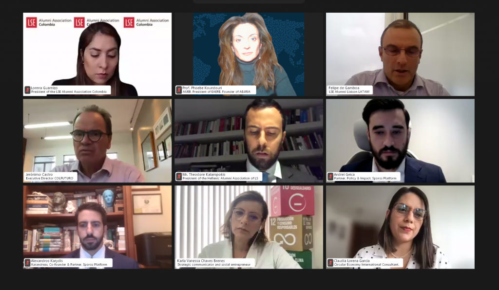 The vibrant LSE community built a bridge across the Atlantic to promote circularity and climate resilience, using Colombia, Costa Rica and Greece as case studies. LSE Alumni Association Colombia, LSE Alumni LATAM, Hellenic Alumni Association of LSE and Fundación COLFUTURO joined forces with impact investors and Circular Economy leaders such as Sporos Platform, SDSN Greece & SDSN Europe, AE4RIA and Symbiosis, to share knowledge, explore best practices, and trigger vital synergies across regions and industry verticals.