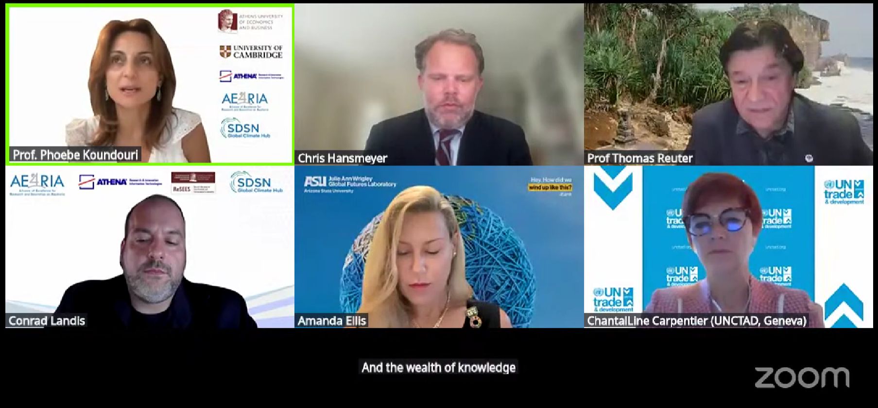 Prof. Koundouri also presented systemic transformation models developed by AE4RIA – the Alliance of Excellence for Research and Innovation on Aephoria – and the SDSN Global Climate Hub. These frameworks offer integrated, science-based pathways to achieving climate neutrality and SDG-aligned development across sectors and countries.
