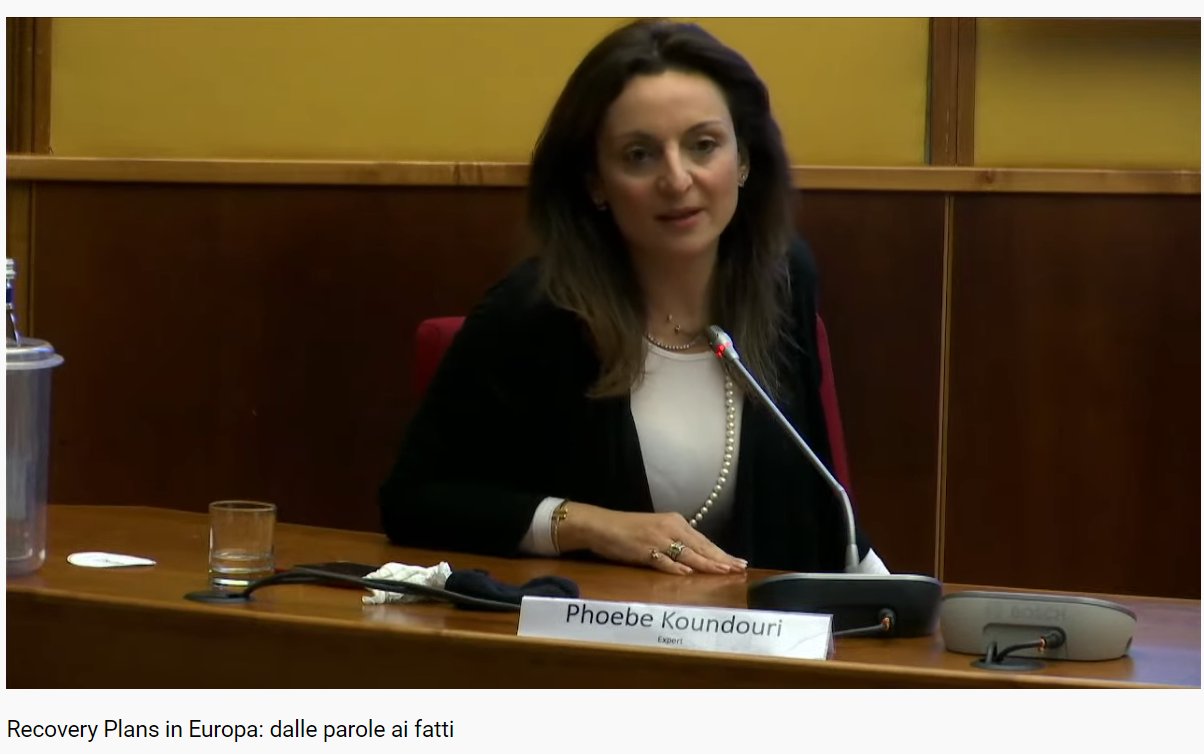 Prof. Phoebe Koundouri gave a speech at the Event on Recovery and Resilience Plans in Europe: from words to deeds in the panel: