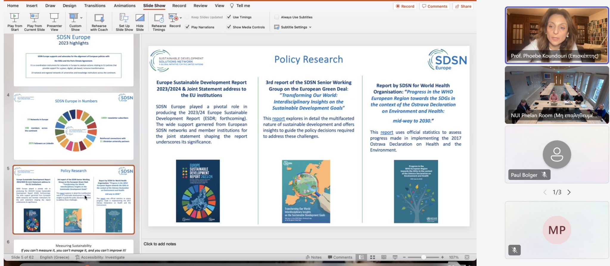 On Thursday January 25th Prof. Phoebe Koundouri presented SDSN Europe and SDSN Global Climate Hub to the SDSN Ireland Executive Committee.