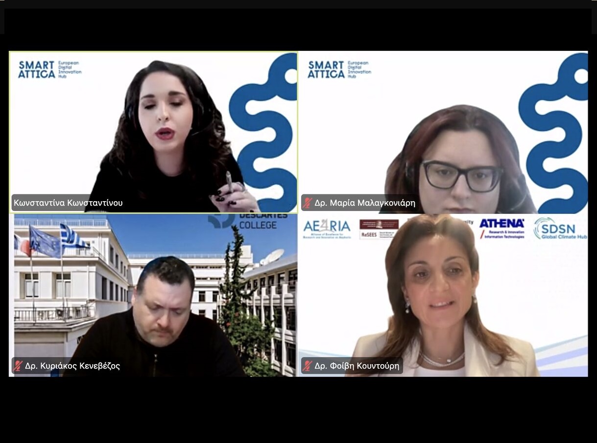 As part of the Smart Attica EDIH initiative, Professor Phoebe Koundouri delivered the keynote address for the online training program, “Innovative Technologies for Sustainable Development: Energy and Environment”. The program focused on leveraging advanced AI and digital technologies to optimize resource use and reduce environmental impacts, and was hosted by the National Documentation Center (EKT).