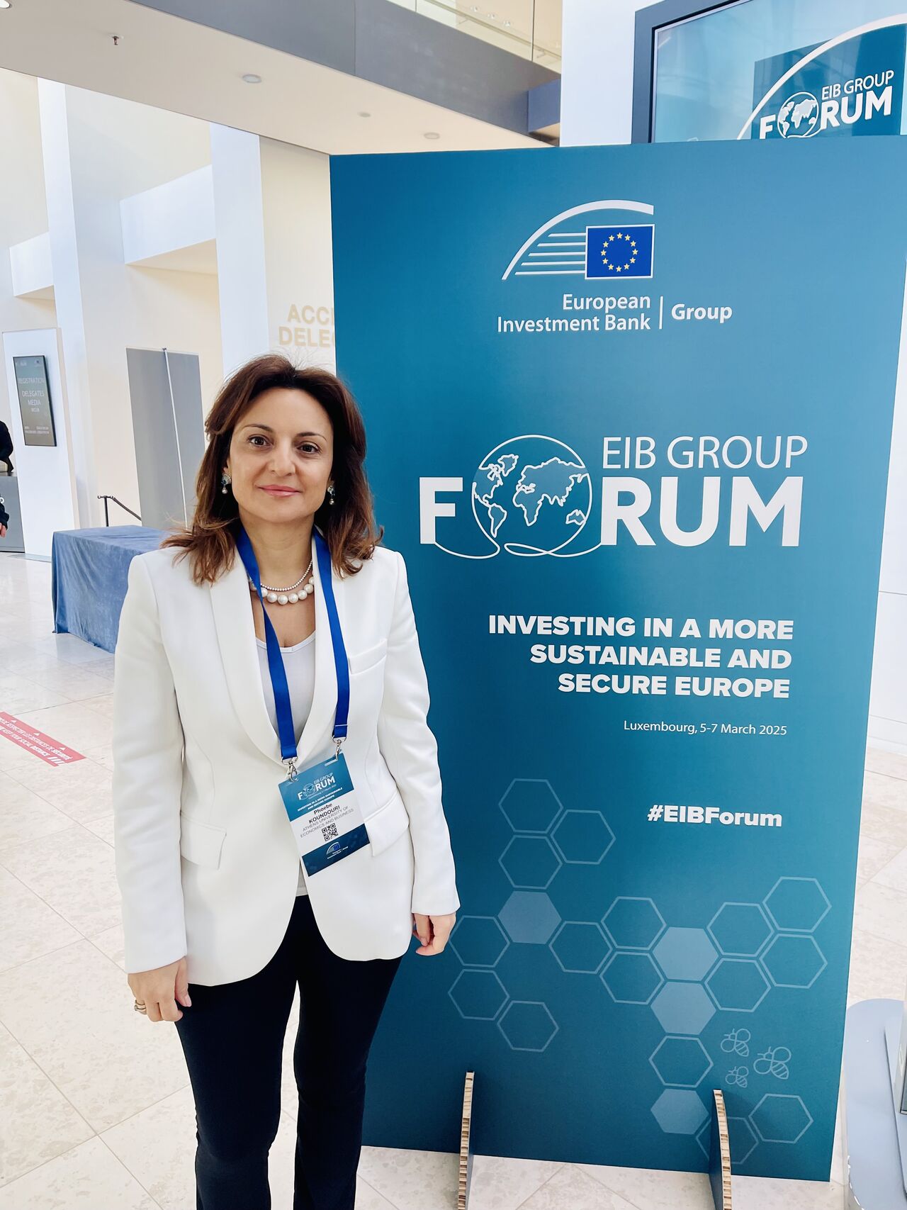 At the European Investment Bank (EIB) Group Forum 2025 in Luxembourg, the Women Climate Leaders Network (WCLN) celebrated its first anniversary. Founded in 2024 by the EIB Group, WCLN has made remarkable strides in advancing green innovation and supporting businesses as they transition to more sustainable practices. Prof. Phoebe Koundouri feels truly privileged to collaborate with 47 inspiring women climate leaders across the EU, all united in their mission to accelerate the green transition. The event was opened by Teresa Ribera, Executive Vice-President of the European Commission for Clean, Just, and Competitive Transition, and European Commissioner for Competitiveness, a long-time collaborator.